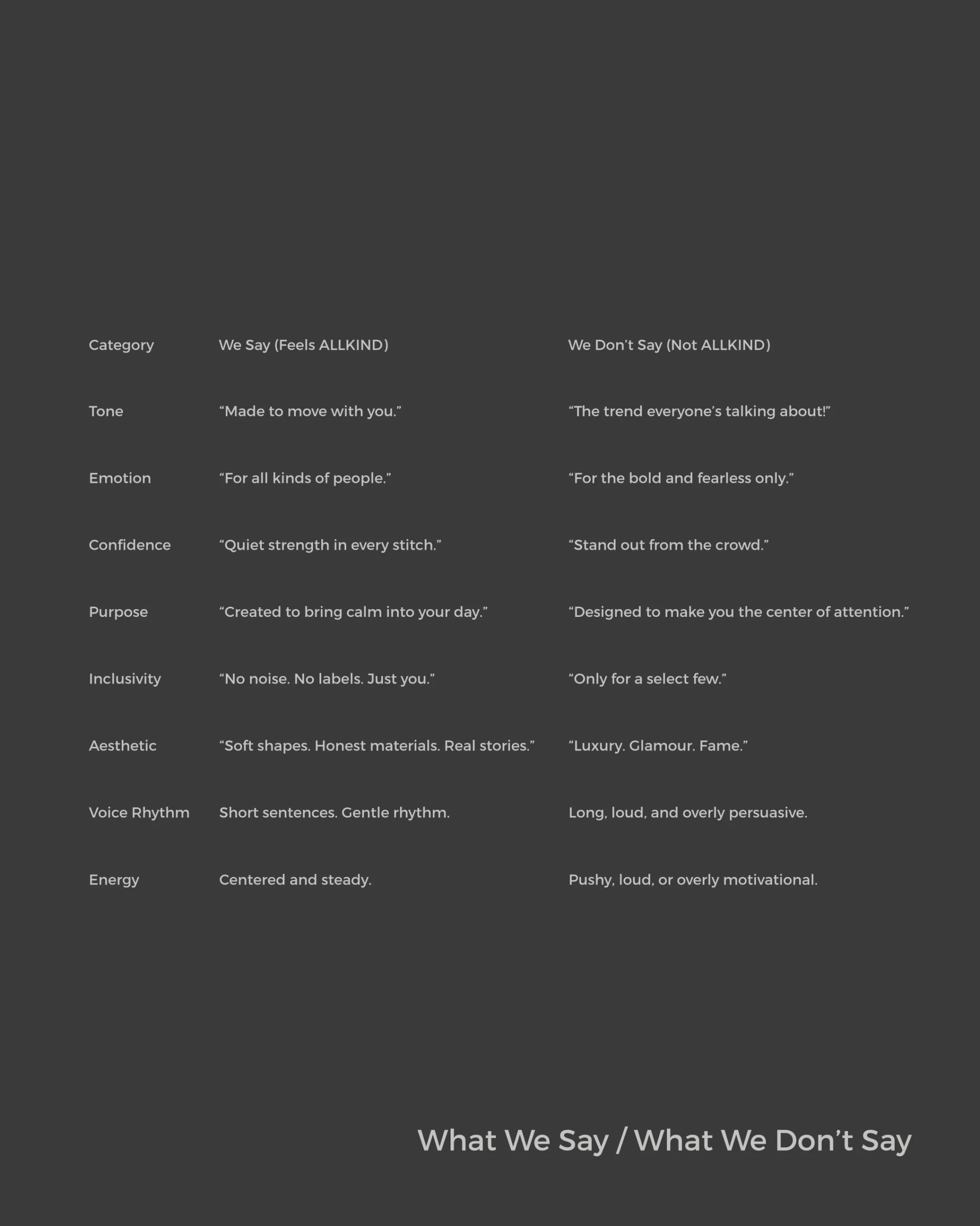 The brand is built around The Creator archetype, focusing on originality, self-expression, and innovation.
