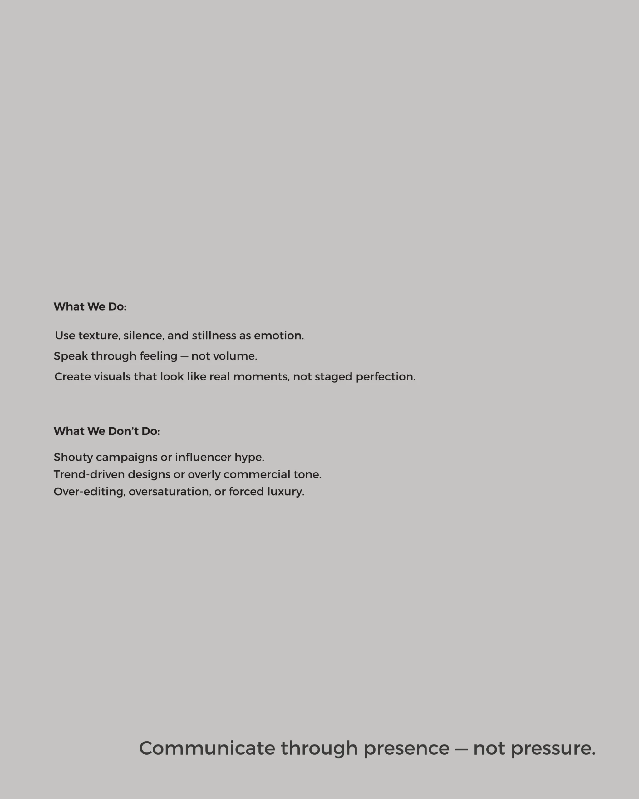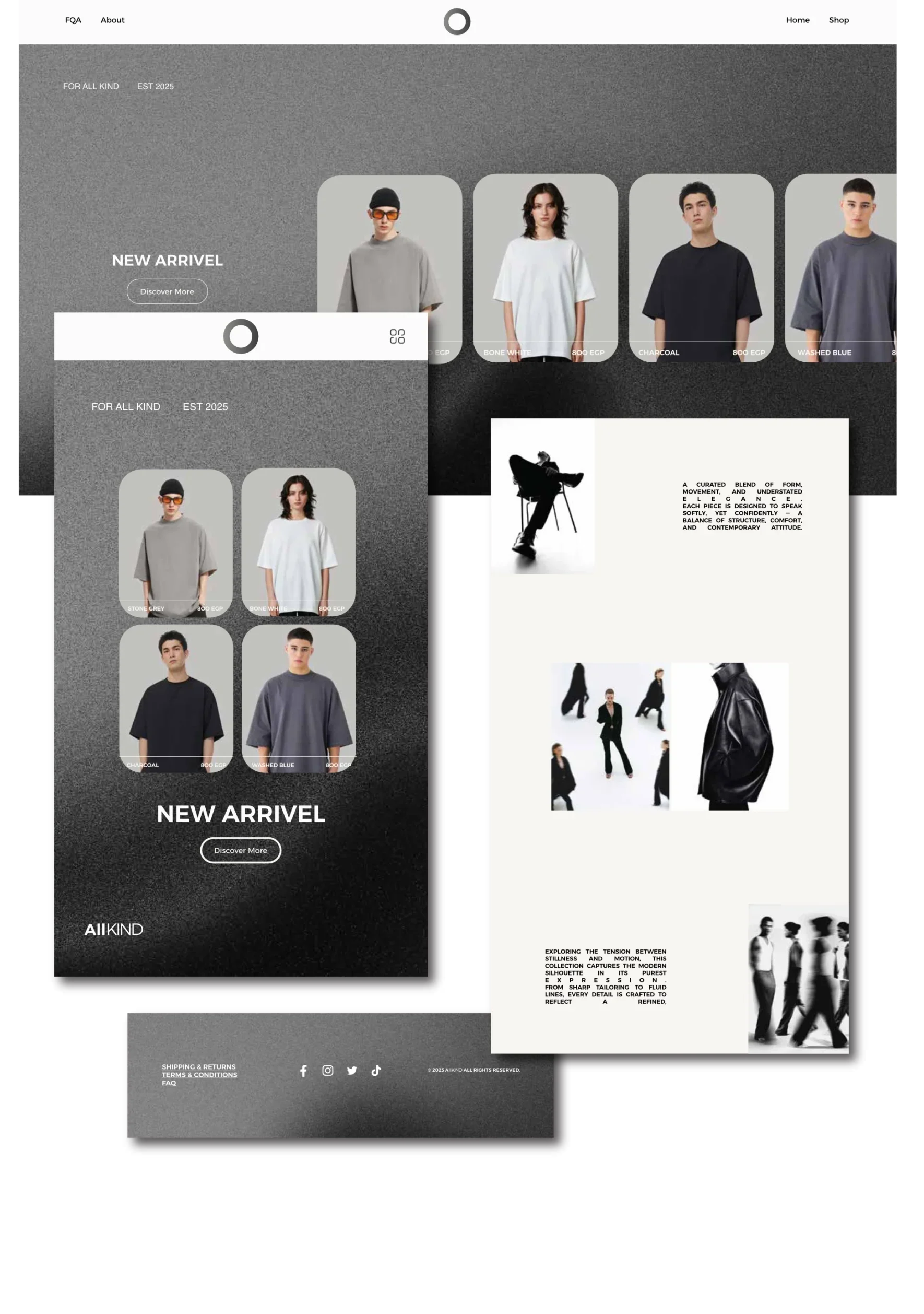 The website is designed as a clean, minimal space that highlights the brand’s identity and values. It focuses on clarity, smooth navigation, and strong visuals to create a memorable user experience.