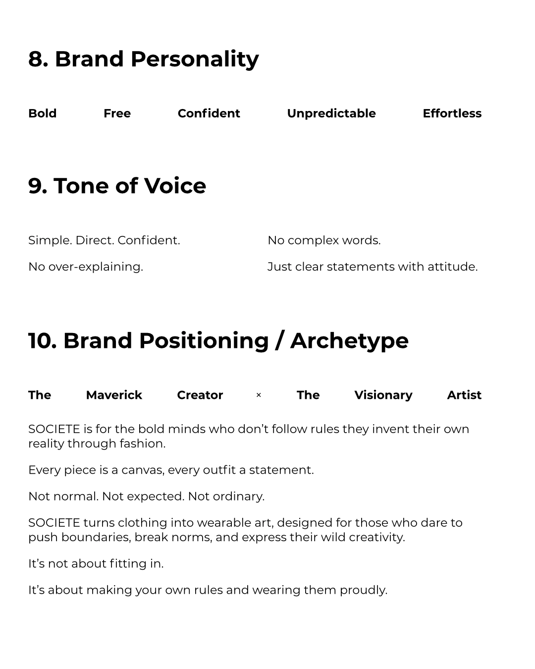 The Maverick Creator thrives on breaking rules and redefining norms. They’re independent, bold, and unpredictable. They see the world as a canvas and refuse to follow the crowd. For SOCIETE, this archetype inspires clothing that challenges standard fashion rules, allowing wearers to stand out with daring designs and bold choices.